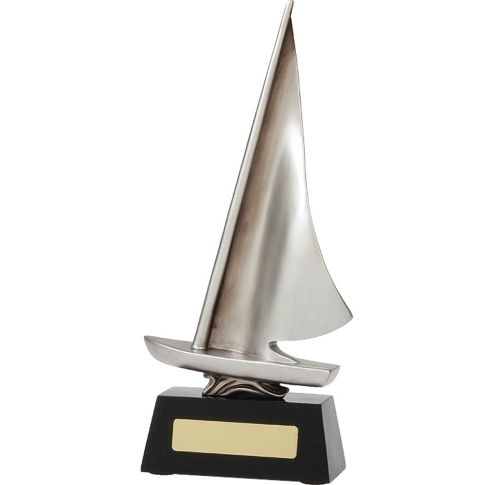 The Abstract Dinghy Silver trophy provides a classic option for your top achievers. Beautifully crafted, these silver resin awards have a lovely weight and feel to them. The price includes free engraving on a gold metal plate. These great value sailing trophies are available in the following sizes: 230mm, 270mm, 300mm.