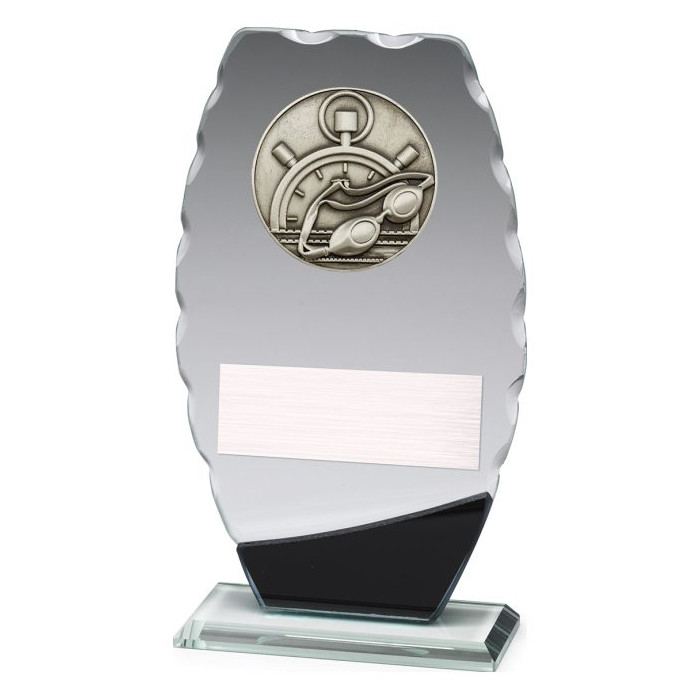 The Clipped Oval Swimming glass award presents a distinguished option for recognising your highest performers. Featuring a striking 3D silver metal theme disc on a stylish clipped glass stand. These wonderful value awards are available in 3 sizes and include free engraving.