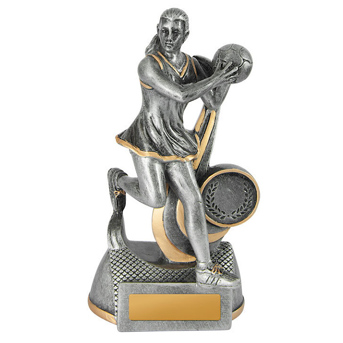 The Contender Netball trophy presents a standout option for your top performers. Finished in antique silver colour with gold highlights. These trophies are available in 5 convenient sizes and include your free club logo centre and free engraving on a gold metal plate.