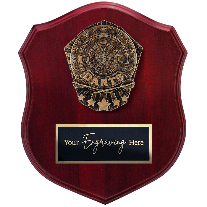 The Cosmos Shields are one of our most popular awards. Featuring a 3D antique gold motif that is superbly finished with great attention to detail – mounted on a premium quality gloss rosewood shield. Your free engraving is presented beautifully on a metal plate below the motif. The reverse side of the shield features both a wall mount and desk stand option.