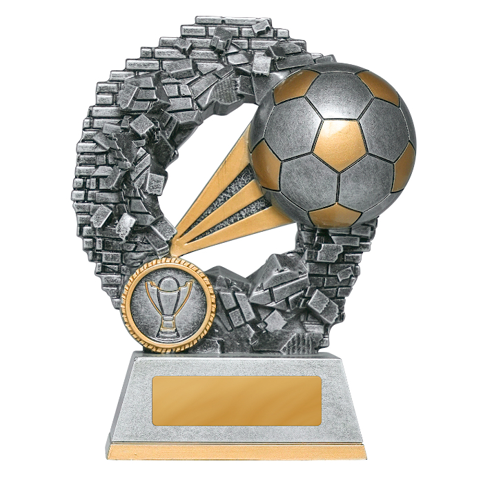 The Crash Through Football trophies are available in multiple sizes and include space for your free club logo centre and free engraving.
