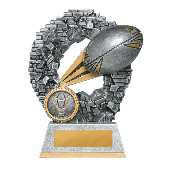 The Crash Through Rugby League / Union trophy provides a fantastic option for your sport stars! The price includes free engraving on a gold metal plate and the inclusion of your logo at no additional cost. These great value rugby trophies are available in the following sizes: 120mm, 140mm, 155mm.