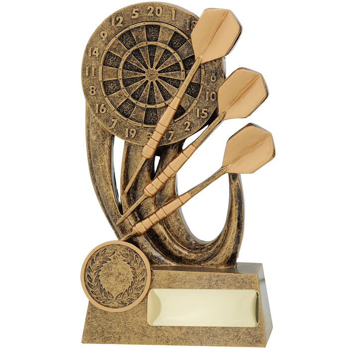 The Epic Series design brilliantly showcases the iconic combination of darts and dart board and is available in 3 convenient sizes. Finished in classic gold trophy colours.