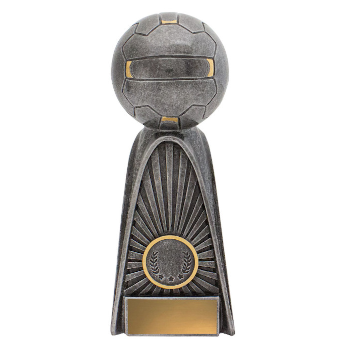 The Fortress Netball trophy offers a bold tower style award featuring an elevated netball ontop of a sunray design. Finished in antique silver with gold highlights. These netball trophies are available in 3 sizes and include space for your free club logo centre and free engraving.