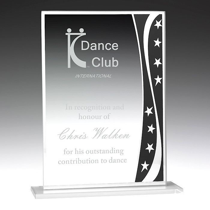 The Glass Black Stargazer award offers an affordable option suited for wide variety of events. With a brilliant multi-star design these striking glass awards offer a premium choice for recognition and appreciation. The price includes free frosted/etched engraving. Enter the wording that you would like engraved (and logo if you have one) and our talented engravers will design a layout for you. If you would like to receive artwork proofs for your approval before manufacture, please let us know in the additional comments section upon checkout.