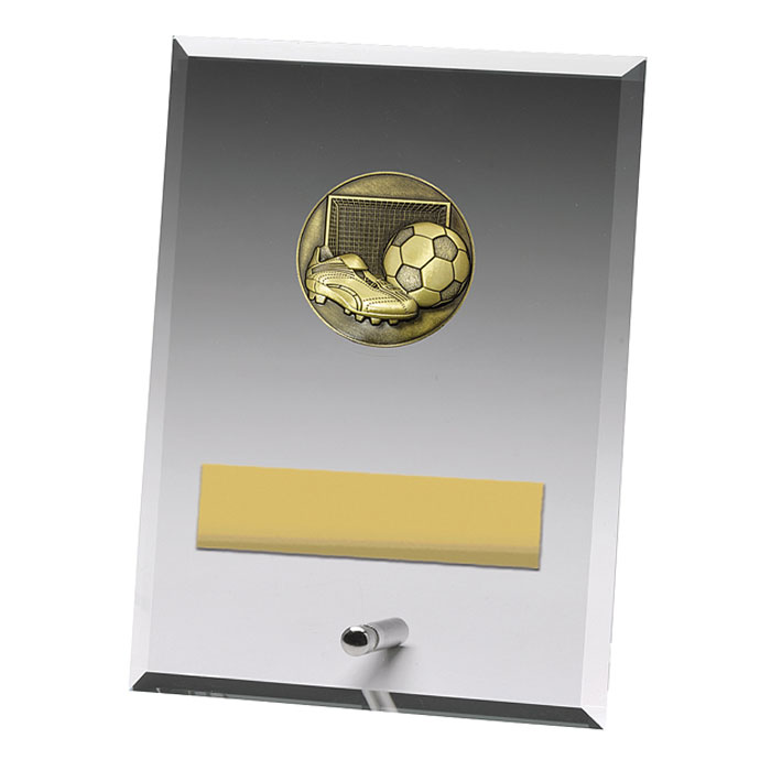 The Glass Plaque Football award is perfect for your top performing players and special award recipients. Glass awards provide a great option that remains affordable. These soccer awards are available in 3 sizes and include space for your free engraving.