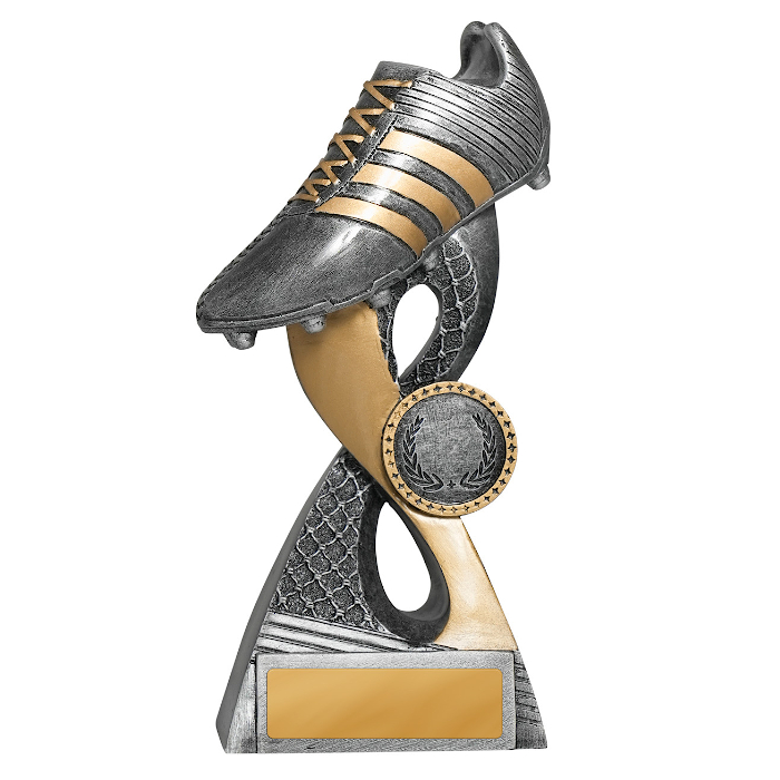 The GR8 Boot Football trophies are available in multiple sizes and include space for your free club logo centre and free engraving.