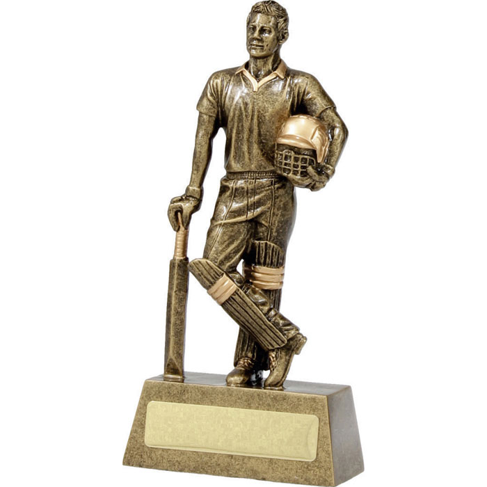 The Cricket Hero Batsman trophy features a champion player standing in an iconic pose. An ideal award to recognise the achievements of that special batsman in your team or cricket club. Finished in classic gold colour. These cricket trophies are available in 5 sizes and include space for your free engraving.