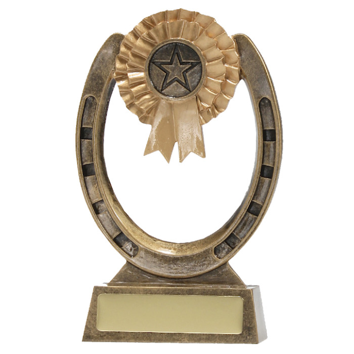 The Horse Shoe and Rosette presents a unique and attractive award option. This well priced and versatile generic equestrian themed award is finished in classic antique gold colours. Available in 3 sizes and includes space for your free club logo (cleverly presented in the centre of the rosette) and free engraving.
