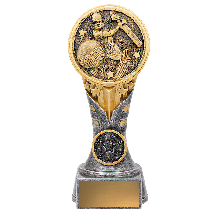 The Ikon Cricket Batting trophy offers a brilliant multi-coloured and textured design with extra weight making it ideal for range of recognition purposes. These great value and durable trophies are quickly becoming one of our most popular award series! They are available in 3 sizes (150mm, 175mm or 200mm) and include space for your free school, club or event logo centre and free engraving on a gold metal plate.