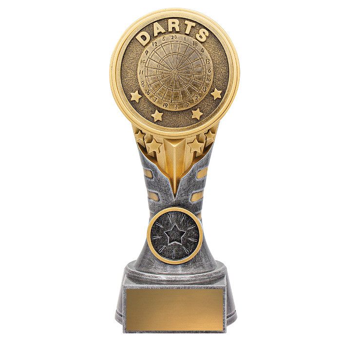 The Ikon Darts trophy offers a brilliant multi-coloured and textured design with extra weight making it ideal for range of recognition purposes. These great value and durable trophies are quickly becoming one of our most popular award series! They are available in 3 sizes (150mm, 175mm or 200mm) and include space for your free school, club or event logo centre and free engraving on a gold metal plate.