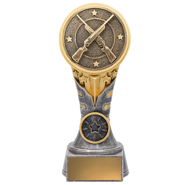The Ikon Rifle Shooting trophy offers a brilliant multi-coloured and textured design with extra weight making it ideal for range of recognition purposes. These great value and durable trophies are quickly becoming one of our most popular award series! They are available in 3 sizes (150mm, 175mm or 200mm) and include space for your free school, club or event logo centre and free engraving on a gold metal plate.
