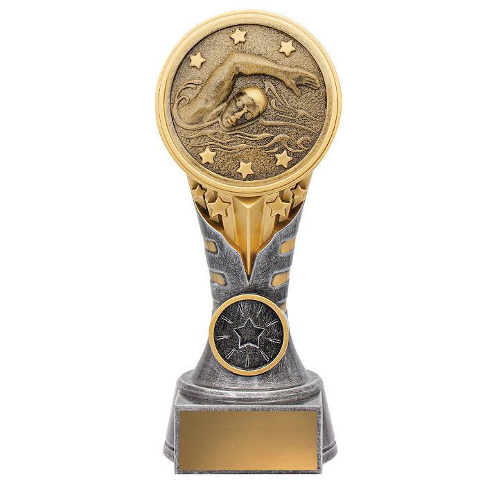 The Ikon Swimming trophy offers a brilliant multi-coloured and textured design with extra weight making it ideal for range of recognition purposes. These great value and durable trophies are quickly becoming one of our most popular award series! They are available in 3 sizes (150mm, 175mm or 200mm) and include space for your free school, club or event logo centre and free engraving on a gold metal plate.