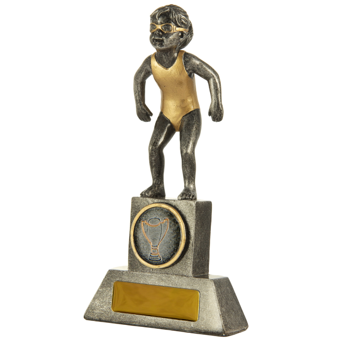 The Little Champs swimming trophy is the perfect award choice for kids and junior players. Featuring a swimmer finished in a classic antique silver and gold colour combination. Available in male or female. Includes space for your free club logo and free engraving on a gold metal plate.