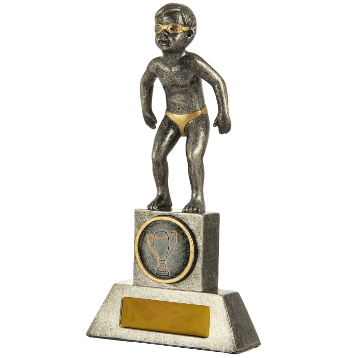 The Little Champs swimming trophy is the perfect award choice for kids and junior players. Featuring a swimmer finished in a classic antique silver and gold colour combination. Available in male or female. Includes space for your free club logo and free engraving on a gold metal plate.