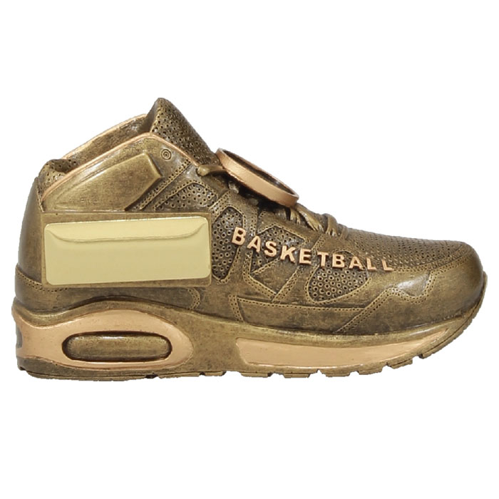 The Mini Basketball Shoe Trophy is a fun and popular choice for your junior players! Finished in traditional antique gold colours. Available in 1 size with space for your free club logo centre (on the front of the shoe) and free engraving.