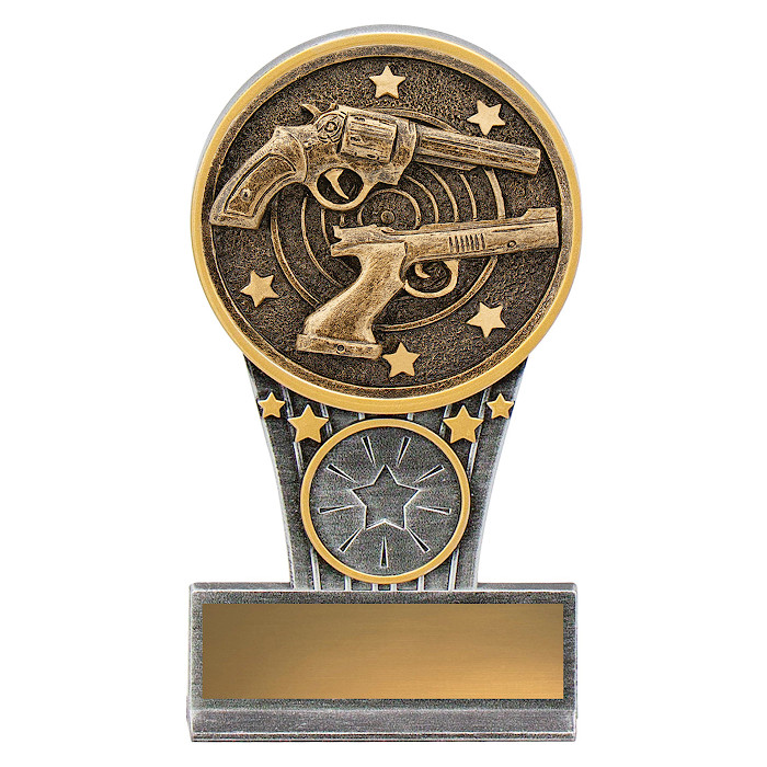 The Mini Ikon Pistol Shooting Award presents a wonderful value option that keeps you under budget! These light-weight, stand-style awards have the same 3D motif as the larger style Ikon trophies. The price includes free engraving on a gold metal plate and the inclusion of your logo at no additional cost! These incredible value awards are available in the following sizes: 125mm