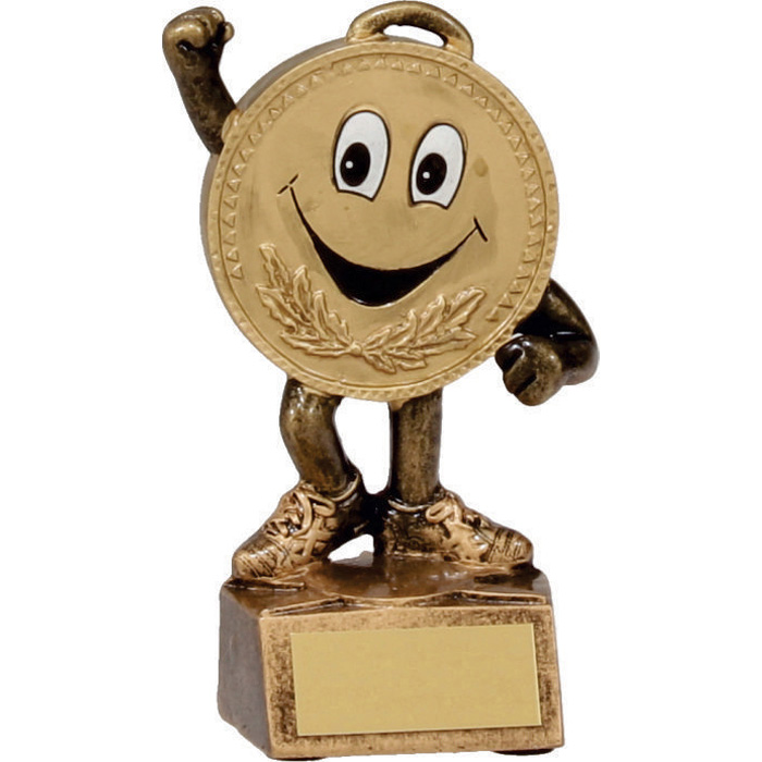 The Mini Medal Character is an affordable, fun and popular option for kids in running and athletics events. Featuring an cute medal character in a victory pose. Finished in classic gold colours. This trophy is available in 1 size and includes space for your free club, school or event logo and free engraving.
