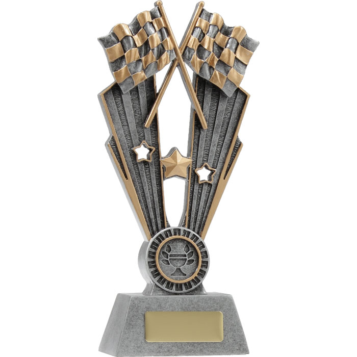 The Motorsport Fame trophy features the iconic crossed motorsport flags. This versatile theme is well suited for various motorsport events. These motorsport trophies are available in 4 sizes and include space for your free logo and free engraving on a gold metal plate.