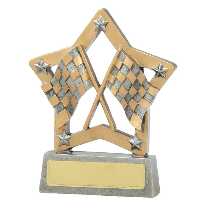The Motorsport Mini Star presents an affordable and popular trophy well suited for a variety of motorsport events. Featuring an attractive star inspired design finished classic silver and gold colours. These motorsport trophies are available in 1 size and include free engraving on a gold metal plate.