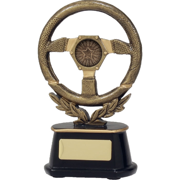 The Motorsport Steering Wheel trophy features an elegant design that celebrates the iconic steering wheel. These motorsport trophies are available in 3 sizes and include space for your free logo (cleverly placed in the centre of the wheel) and free engraving on a gold metal plate.