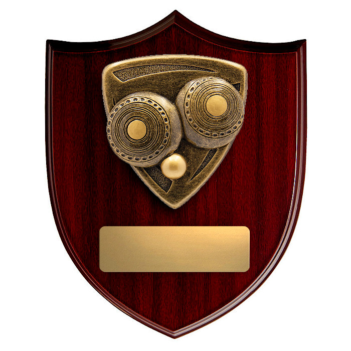 The Nova Shield Lawn Bowls Award provides a nice alternative to a traditional trophy. The shield features a masterfully crafted 3D antique gold motif showcasing your chosen sport/activity. Your complimentary engraving is elegantly displayed beneath the design on a metal plate. These classic gloss rosewood shields feature both a wall mount and desk stand option on the reverse side of the award. Size: 160mm high
