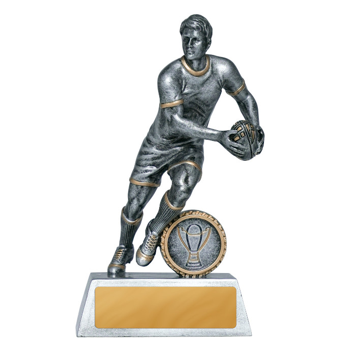 The Overlap Rugby League / Union Male trophy provides a fantastic option for your sport stars! The price includes free engraving on a gold metal plate and the inclusion of your logo at no additional cost. These great value rugby trophies are available in the following sizes: 130mm, 160mm, 190mm, 230mm, 270mm.