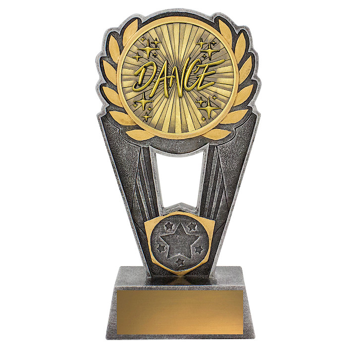 The Polaris Dance trophy presents a striking wreath design with a finely detailed metal centre. These popular and well priced trophies are available in 3 sizes (135mm, 155mm or 175mm) and are finished in classic silver and gold colours. The price includes the free addition of your club, school or event logo and free engraving on a gold metal plate.