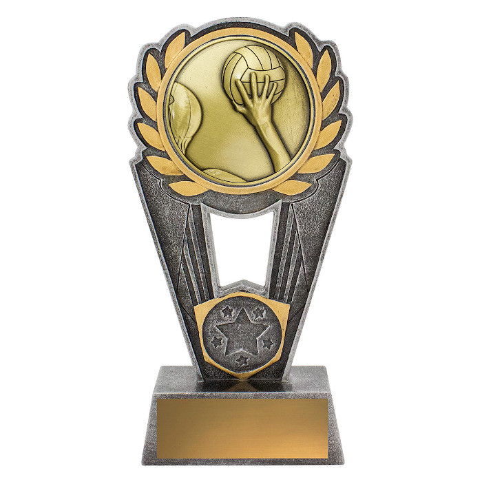 The Polaris Water Polo trophy presents a striking wreath design with a finely detailed metal centre. These popular and well priced trophies are available in 3 sizes (135mm, 155mm or 175mm) and are finished in classic silver and gold colours. The price includes the free addition of your club, school or event logo and free engraving on a gold metal plate.