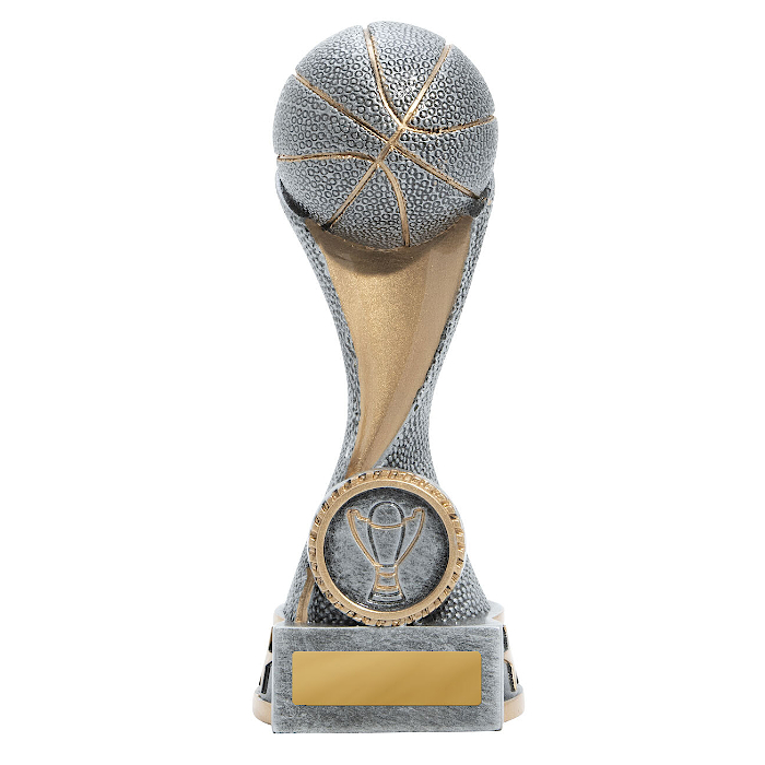 The Sicily Basketball offers a great new tower style trophy for your end of season awards! Featuring a ball held high on a swirling tower. Finished in antique silver colour with gold highlights. These basketball trophies come in 5 sizes and include space for your free club logo centre and free engraving.