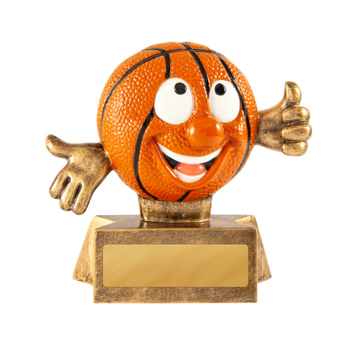 The Smiling Basketball trophy is another fun generic award choice for kids and junior players. The mini trophy features a colourful basketball character and is finished in a classic trophy gold colours. Includes space for your free engraving.
