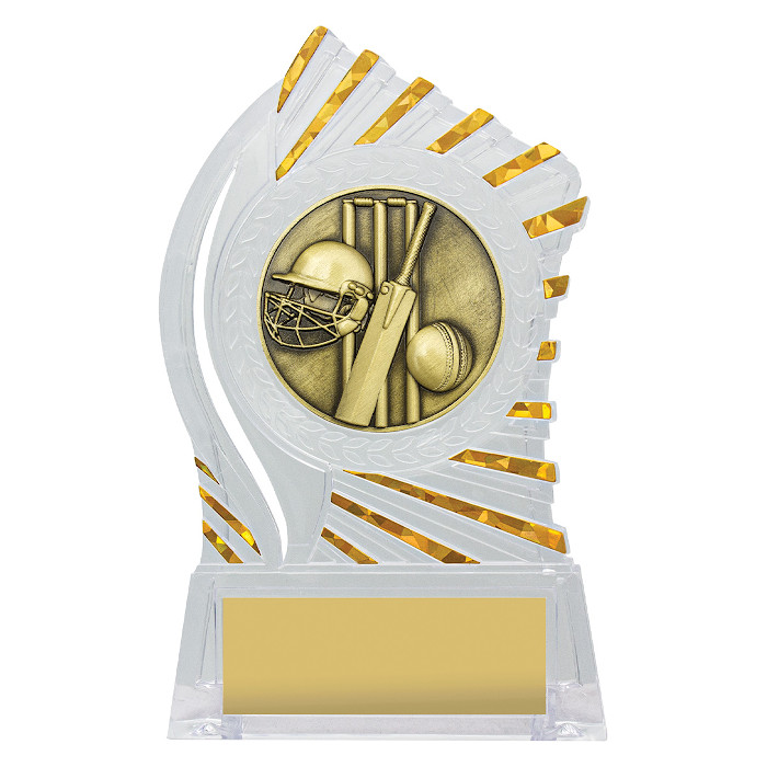 The Solar Acrylic Cricket Awards present a terrific low-cost option that will keep your bank balance happy! These durable stand-style, acrylic awards feature a gold metal motif depicting your sport/activity and have a bright gold dazzling sunray surround. The price includes free engraving on a gold metal plate! These incredible value cricket awards are available in the following sizes: 145mm.