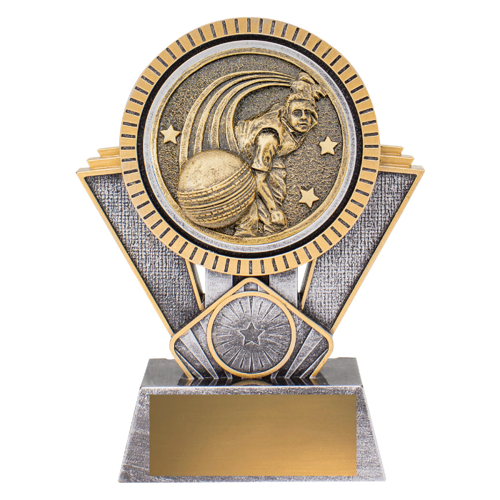 The Spartan Cricket Bowling trophy presents a striking 3D enhanced design finished in a classic antique gold and silver colour combination. These great value and durable trophies are from one of our most popular award series! They are available in 3 sizes and include space for your free school, club or event logo centre and free engraving on a gold metal plate.