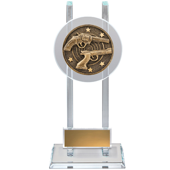 The Spartan Glass Pistol Shooting award presents a prestigious option for recognising your top performers. Featuring a striking 3D enhanced theme motif on a stylish glass stand. These wonderful value glass awards are available in 3 sizes and include free engraving on a gold metal plate.