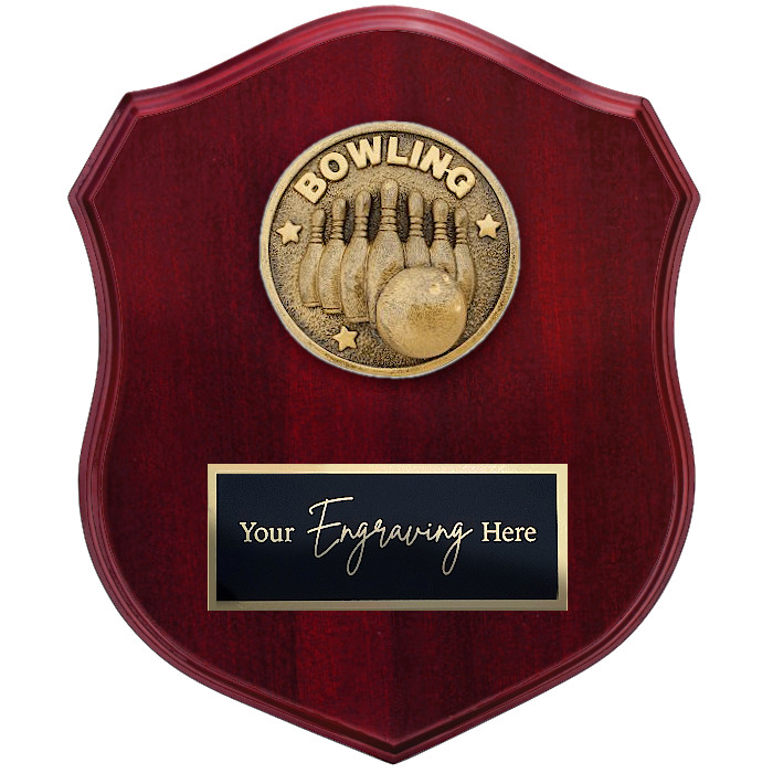 The Spartan Shields are a popular award choice. The superbly finished 3D antique gold motif offers great attention to detail. Mounted on a traditional gloss rosewood shield plaque. Your free engraving is presented beautifully on a metal plate below the motif. The reverse side of the shield features both a wall mount and desk stand option.