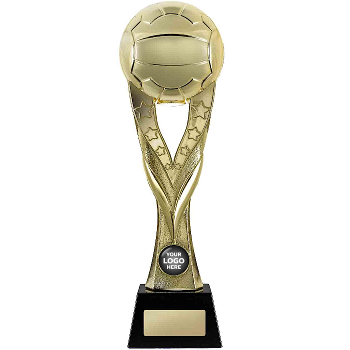 The Star Series Netball trophy showcases a raised ball design with an high shine gold finish, it’s mounted on a sleek black base for a classic and premium look. This trophy is a excellent way to honour effort and achievement on the court. These great-value netball trophies are available in the following sizes: 260mm, 295mm high. All prices include FREE engraving and FREE LOGO centres!