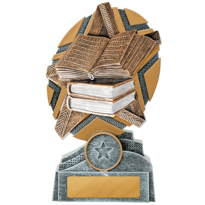 The Starburst Reading trophy presents a dazzling star-shaped design with a detailed 3D motif. These trophies are available in three convenient sizes (130mm, 150mm, or 170mm). The price of your trophy includes the free addition of your club, school, or event logo and free engraving on a gold metal plate.