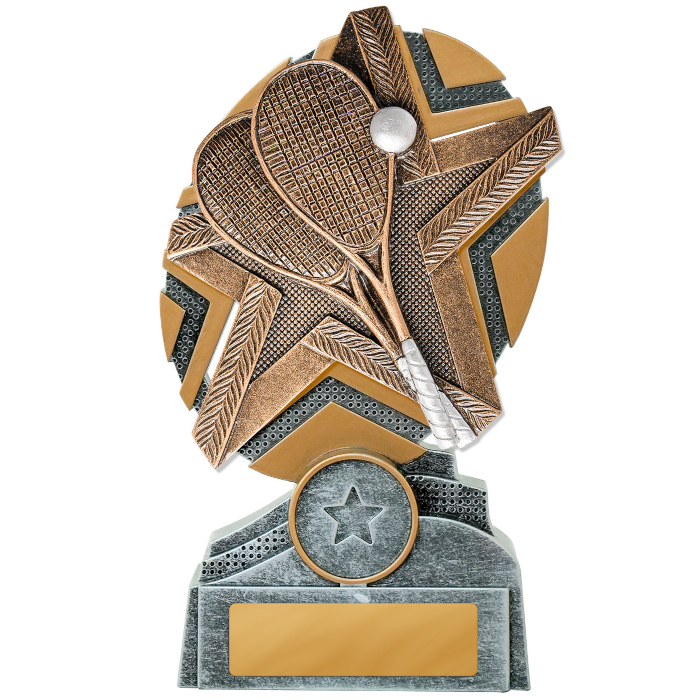 The Starburst Squash trophy presents a dazzling star-shaped design with a detailed 3D motif. These trophies are available in three convenient sizes (130mm, 150mm, or 170mm). The price of your trophy includes the free addition of your club, school, or event logo and free engraving on a gold metal plate.