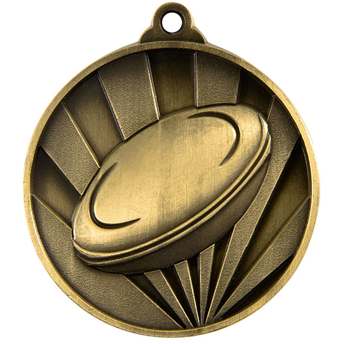 The Sunrise Rugby League / Union Medals feature an impressive sunray 3D theme. There is no compromise on quality with this well priced medal! Presented in a popular 50mm size finished in classic gold, silver or bronze. Each medal has space on the back for your free engraving requirements and comes with a free neck ribbon in your choice of colour.