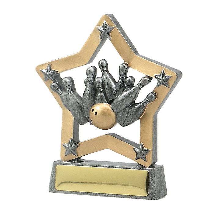 Affordable and popular Mini Star Tenpin trophy for participants both male and female. An attractive star inspired design, classic silver and gold colours, well suited for bulk orders.