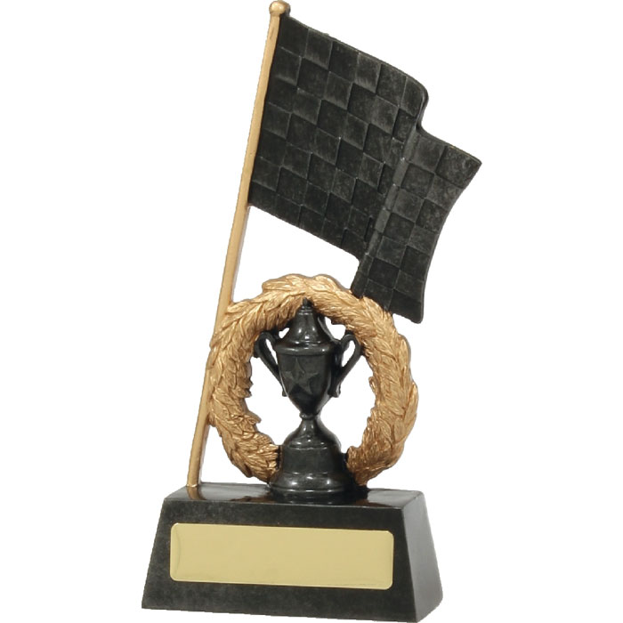 The Winner’s Cup trophy is well suited for various motorsport events and activities. The design features the iconic motorsport elements of finish flag, victory wreath & trophy cup. Finished in distinctive black with gold highlights. These motorsport trophies are available in 3 sizes and include free engraving on a gold metal plate.